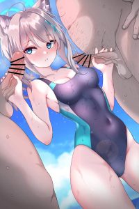 海で水着シロコが手コキして顔射されちゃう♡